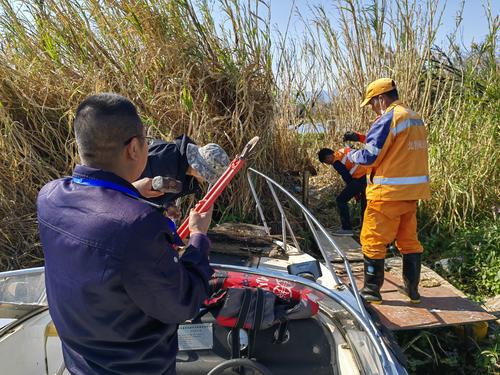 为深入贯彻落实习近平总书记关于长江禁捕的重要指示批示精神,确保国家和省、市移交问题整改到位,2022年3月9日,昆明市西山区水务局联合昆明市滇池管理局(执法总队、渔政处)、滇池湖泊公司、区公安分局、区农业农村局、区市场监管局、区城市管理局,福海街道办事处、马街街道办事处、北控城市环境服务有限公司及昆明顺清保洁服务有限公司开展清湖专项行动。