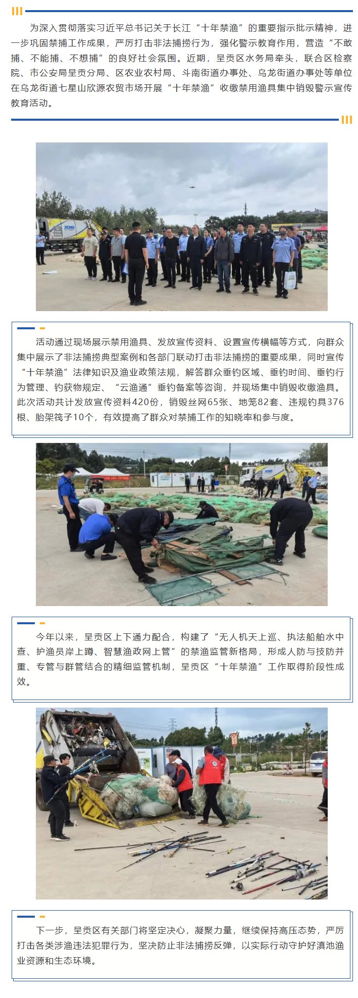 【呈贡区】呈贡区开展“十年禁渔”收缴禁用渔具集中销毁警示宣传教育活动