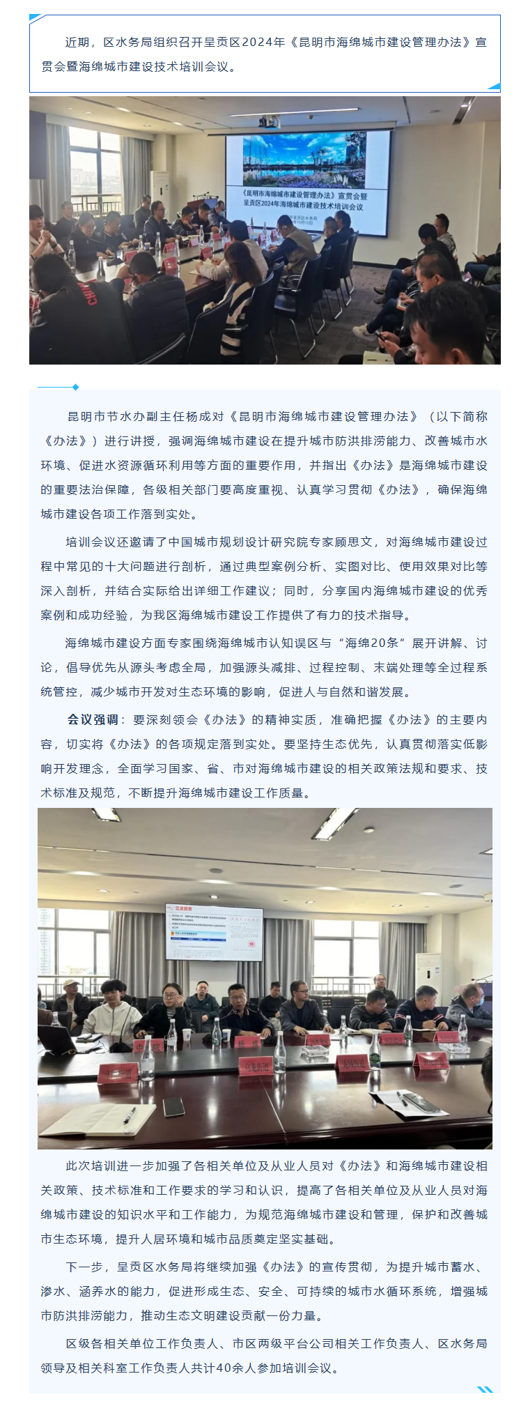 【呈贡区】呈贡区组织召开《昆明市海绵城市建设管理办法》宣贯会暨呈贡区2024年海绵城市建设技术培训会议